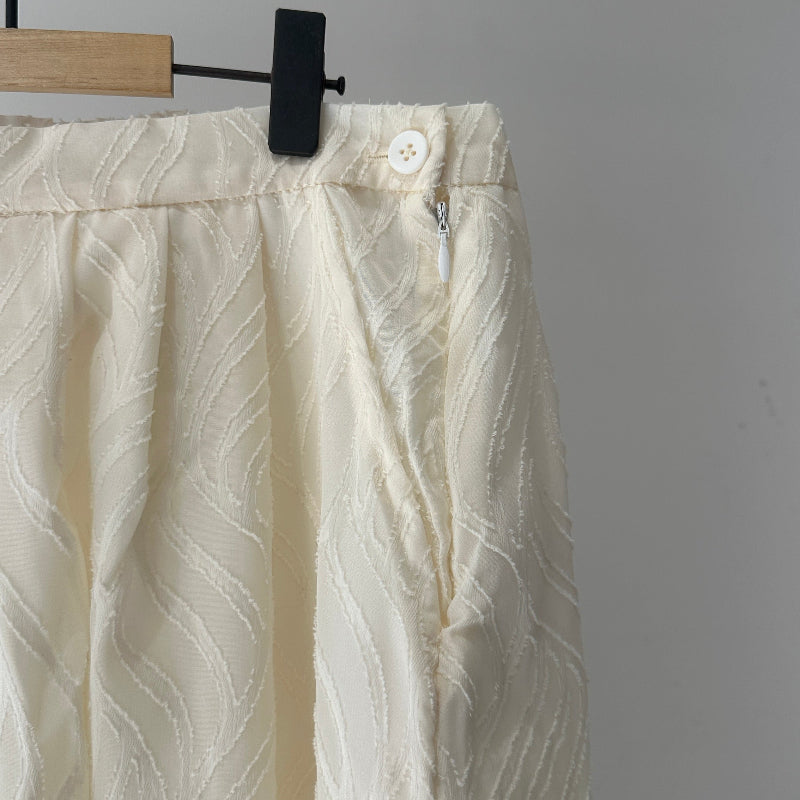 - 【ハモミシノオトナフク】Sheer jacquard pleated pants