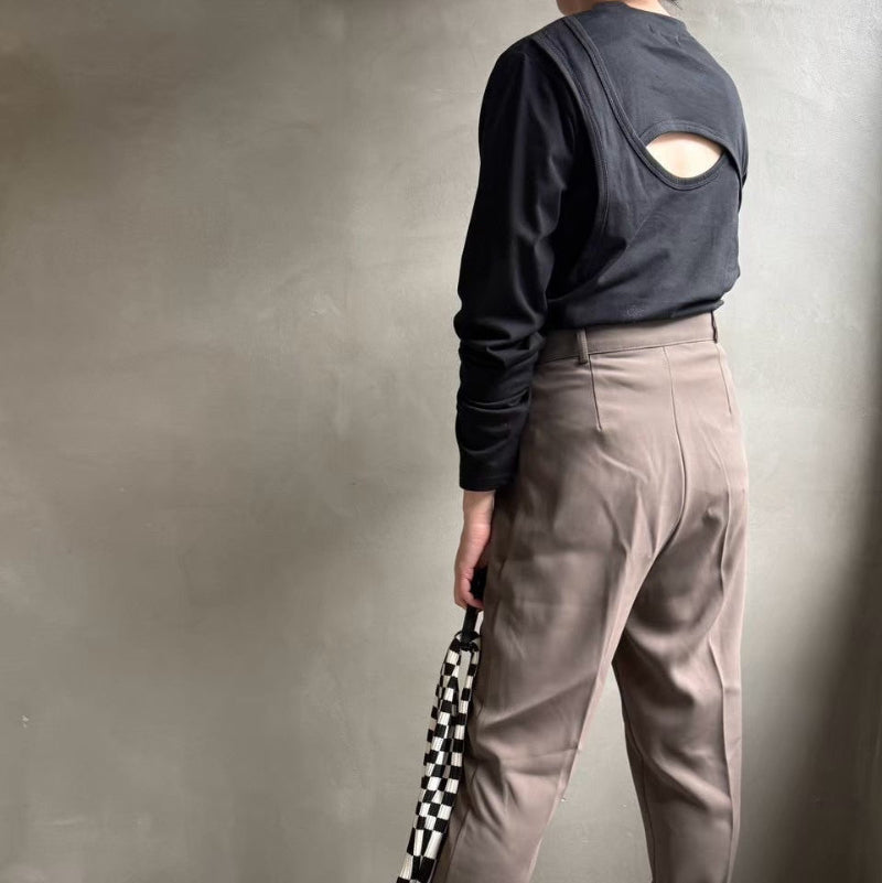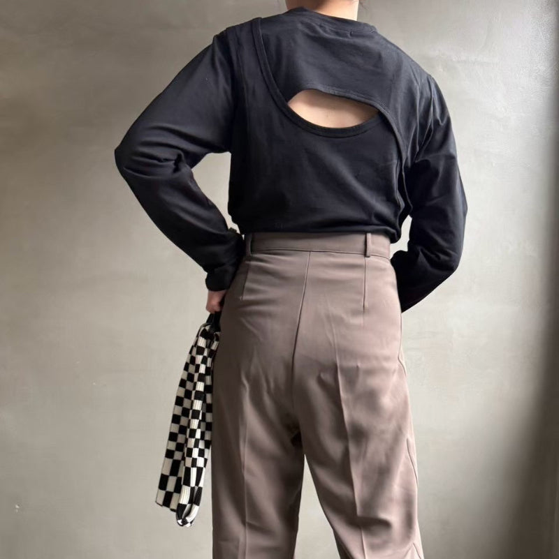 - 【ハモミシノオトナフク】Back cutout design long t-shirt