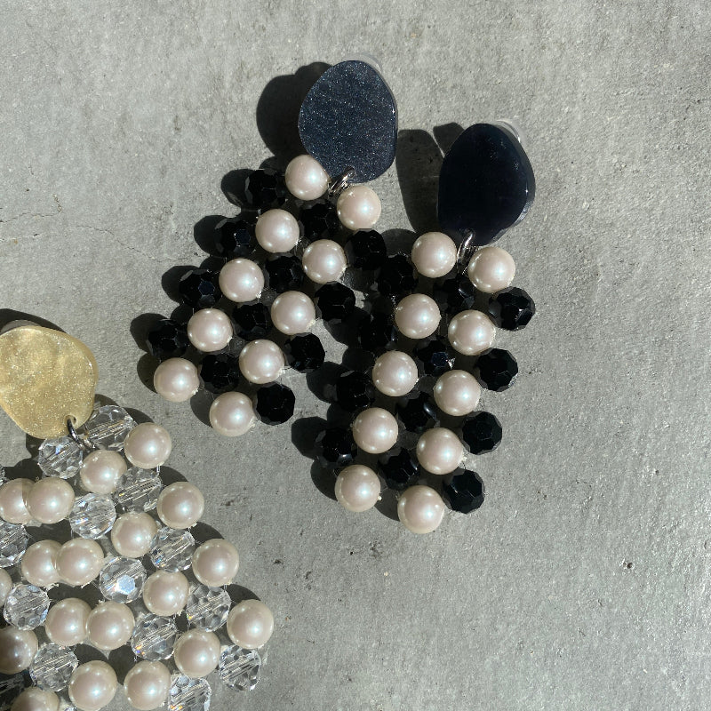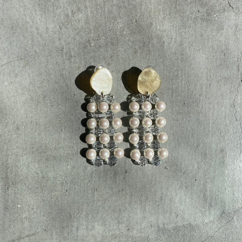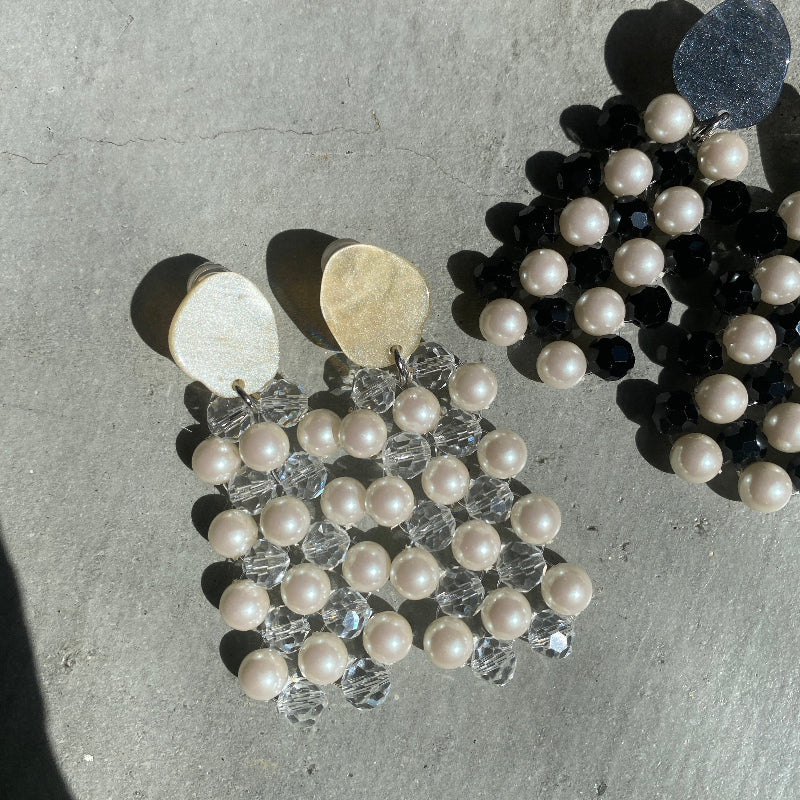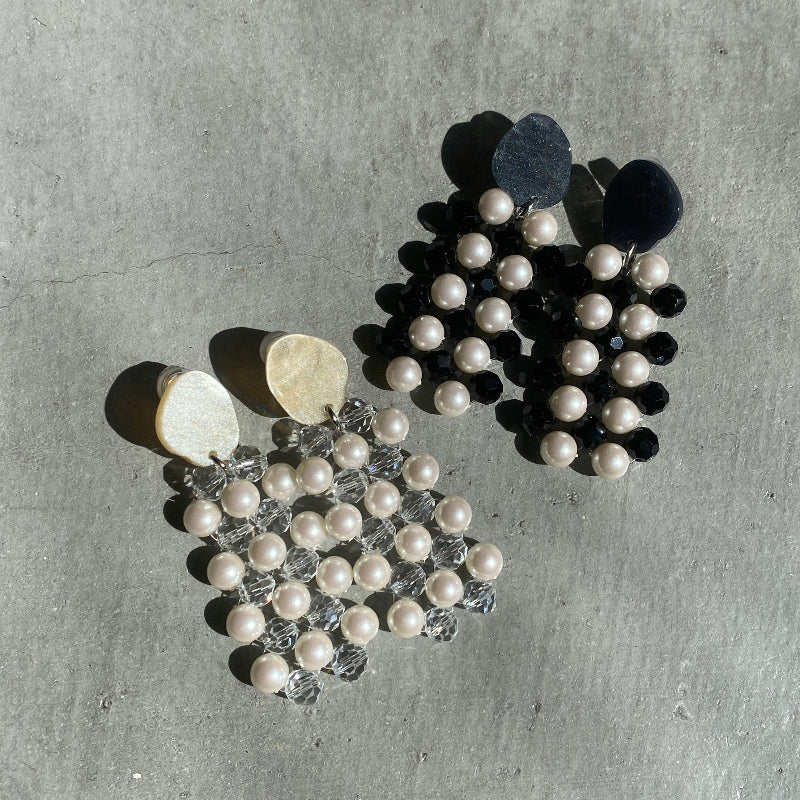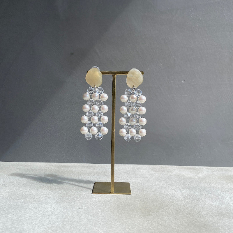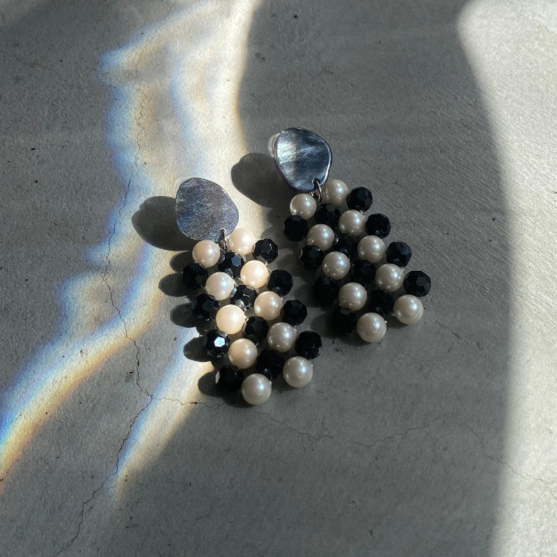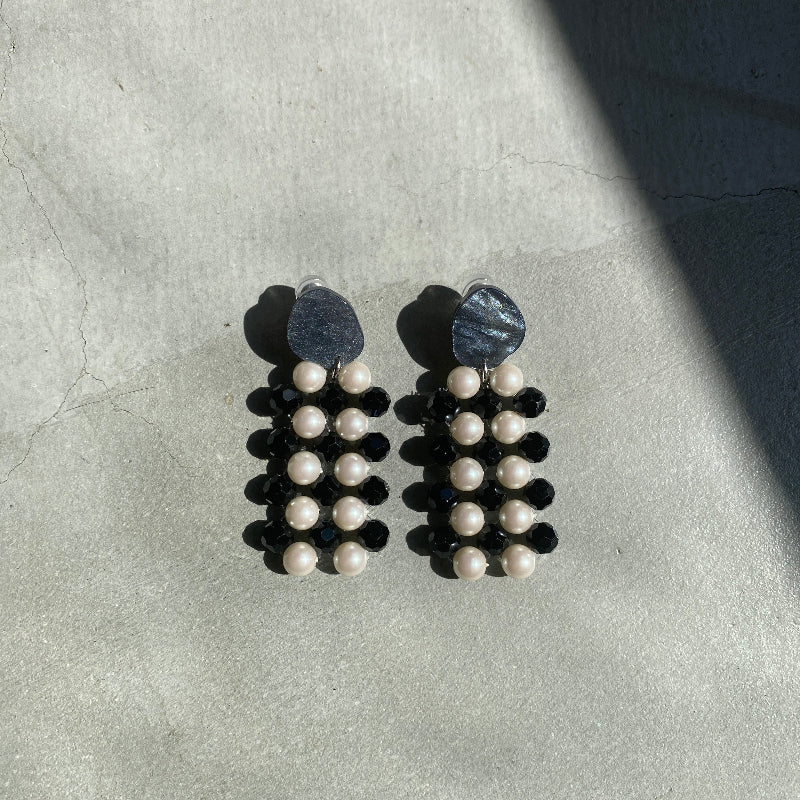 掛け合わせた2toneイヤリング。しっかりとしたボリューム感で