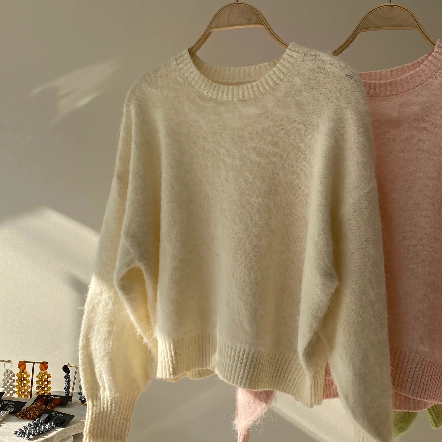 • 【ハモミシノオトナフク】Mohair crew neck pullover