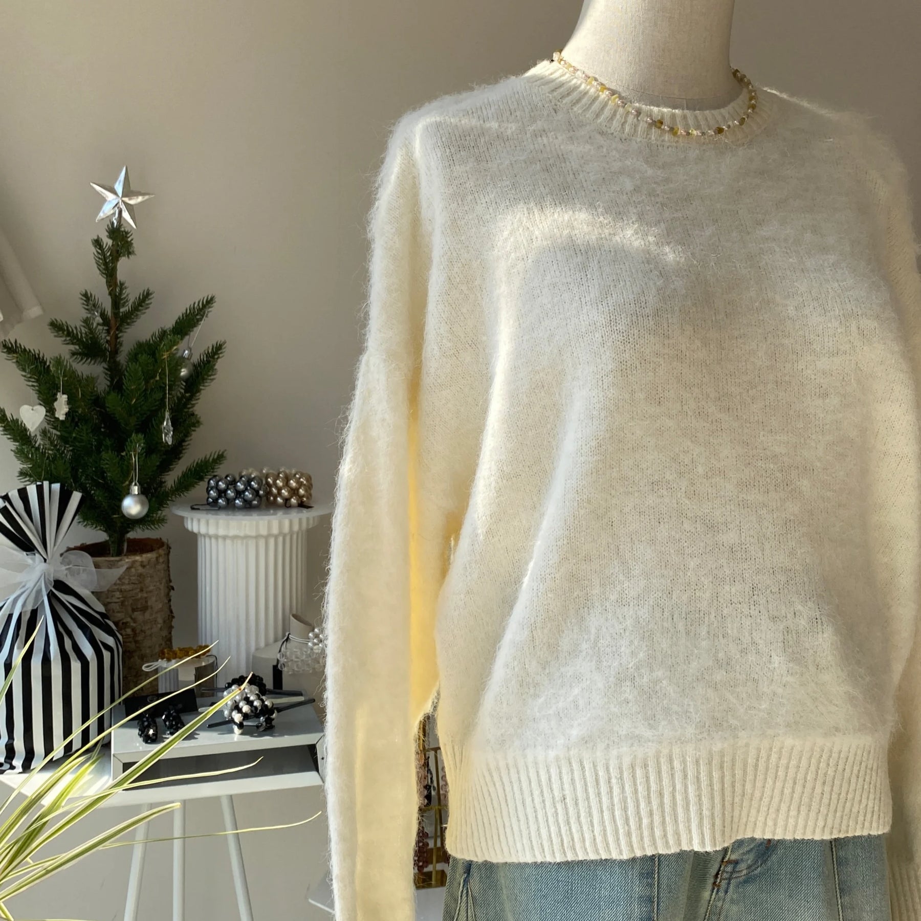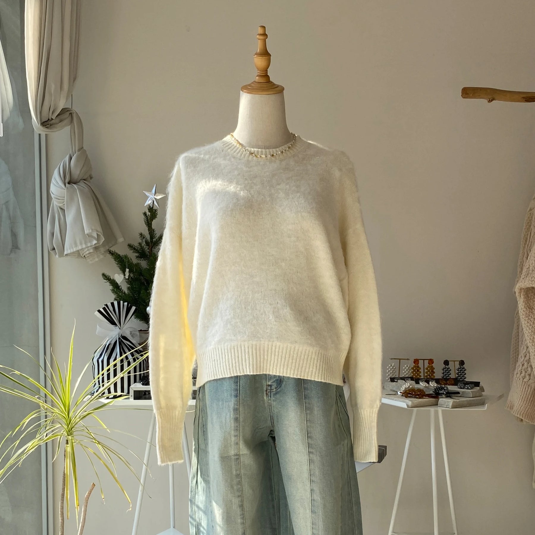 【ハモミシノオトナフク】Mohair crew neck pullover