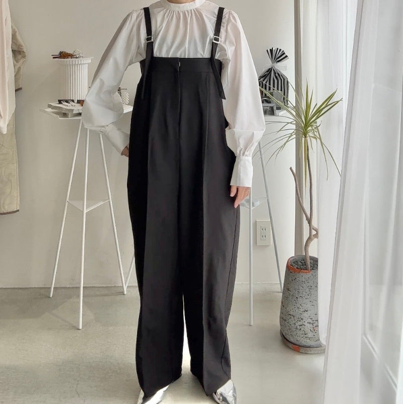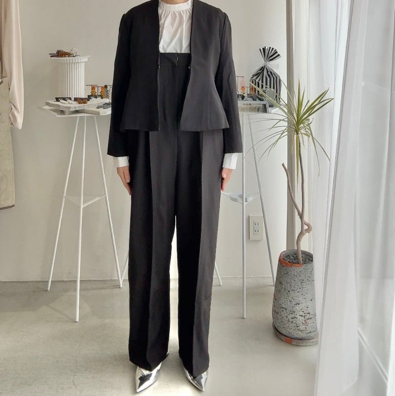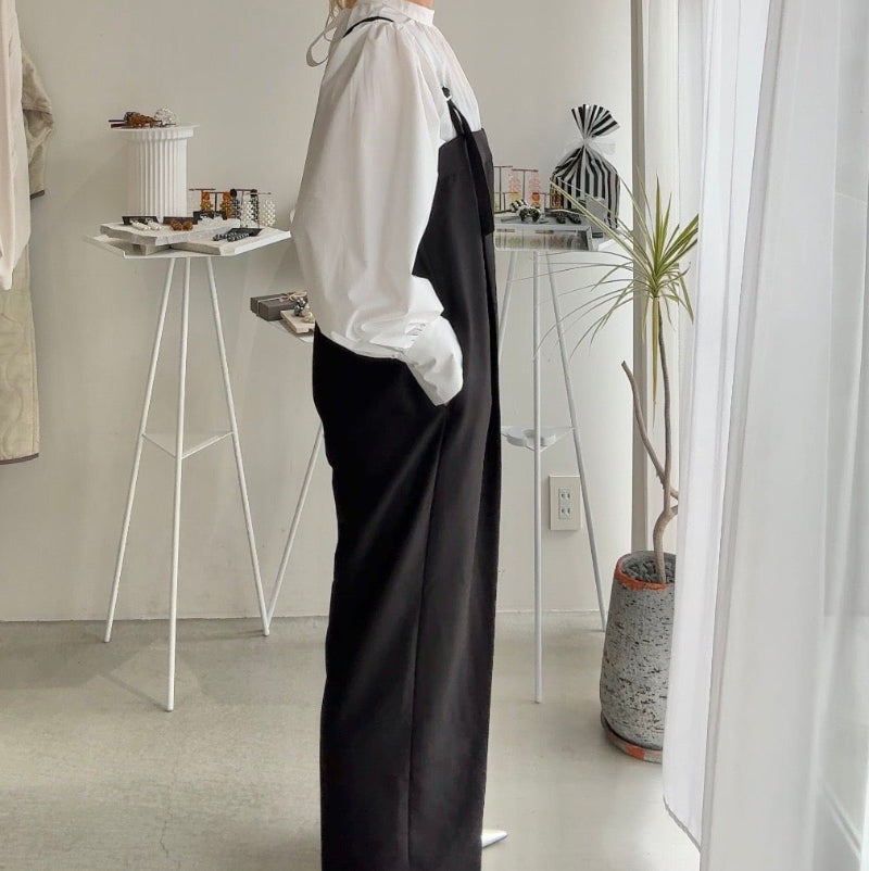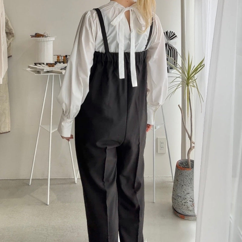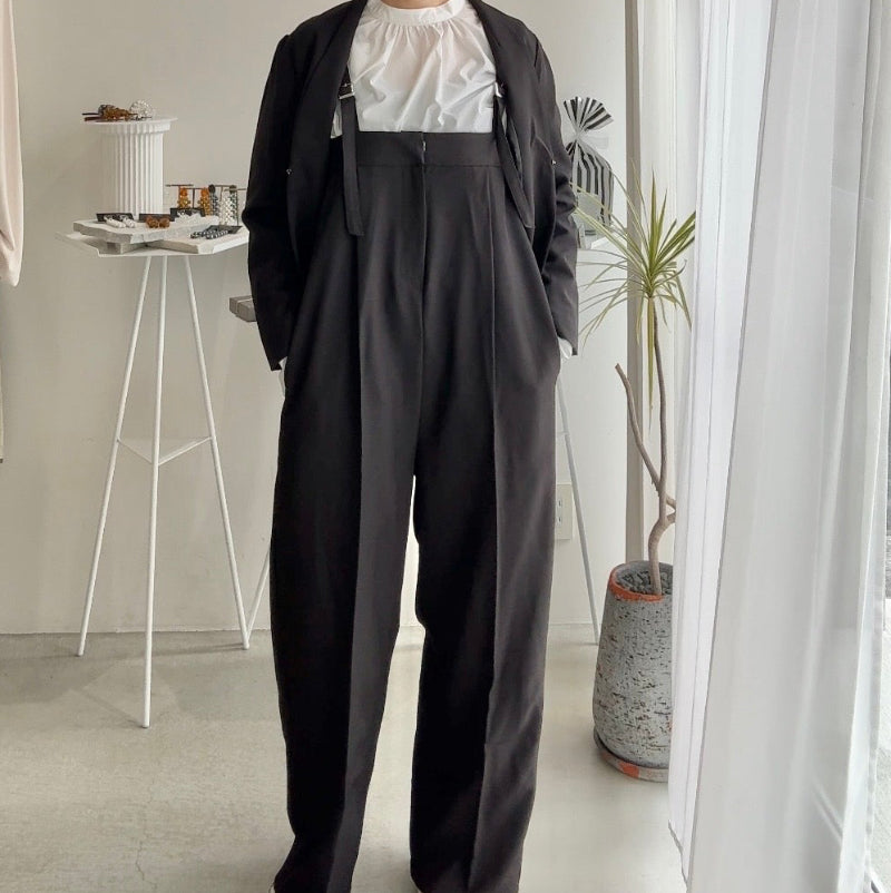上質なスーツ地ツイル素材を使用した、洗練された印象のベアサロペット。