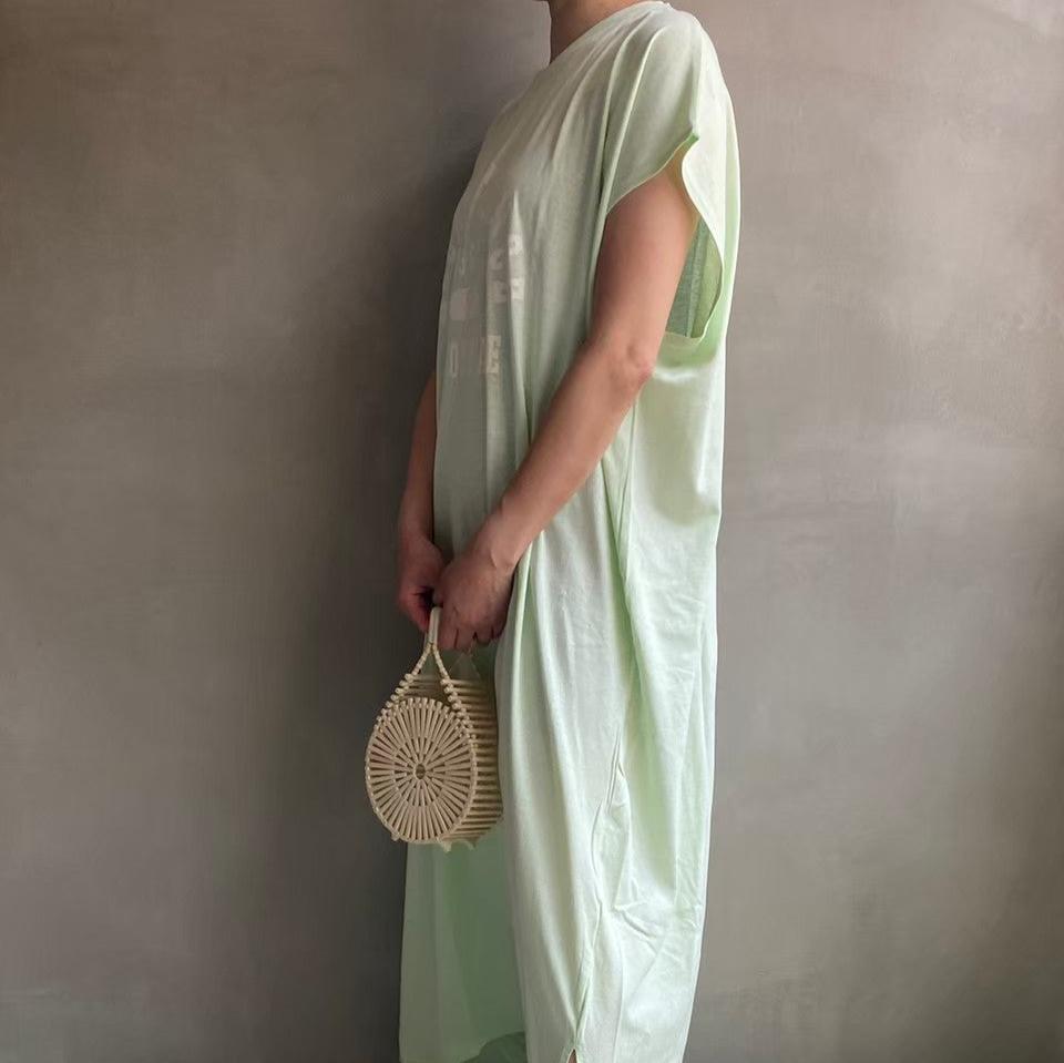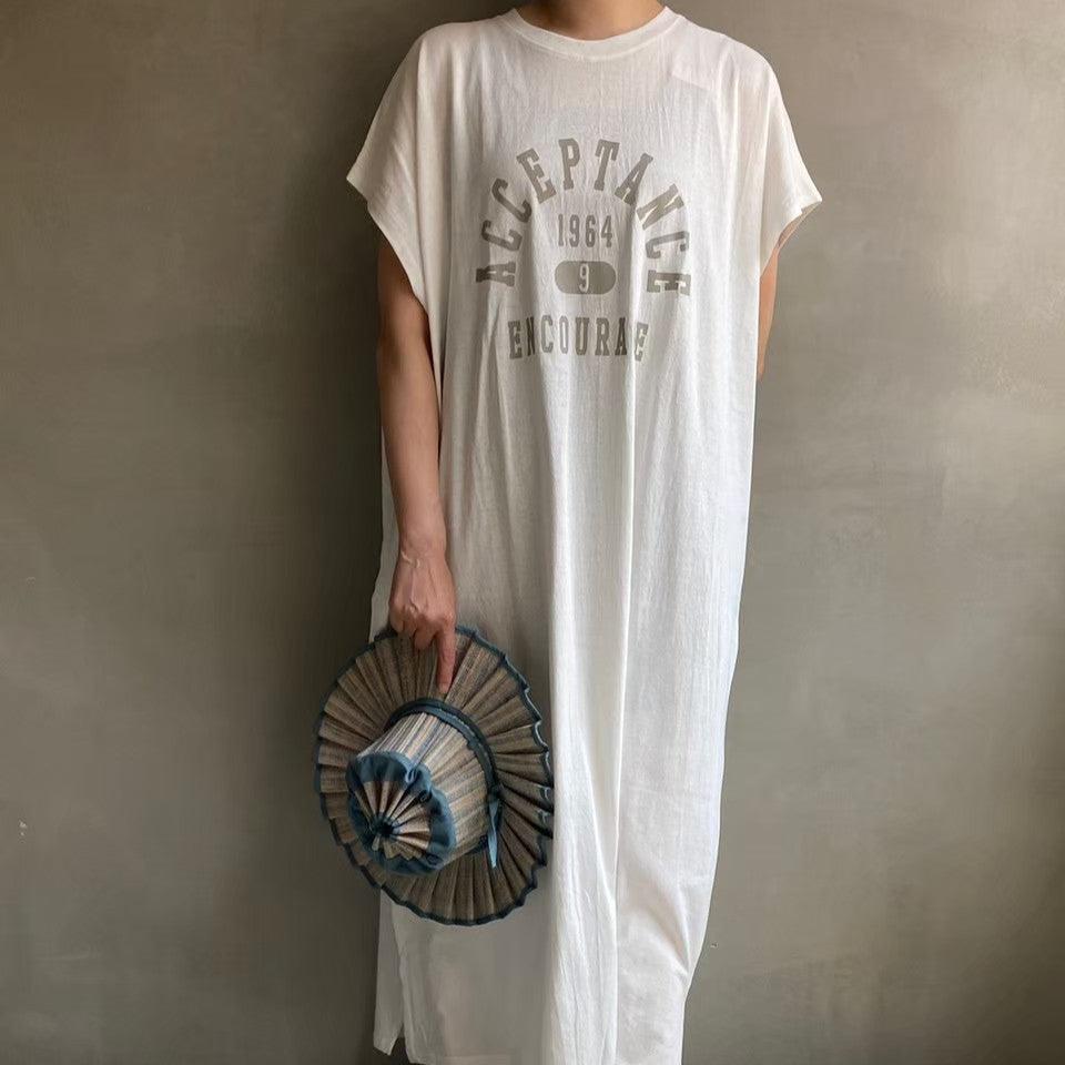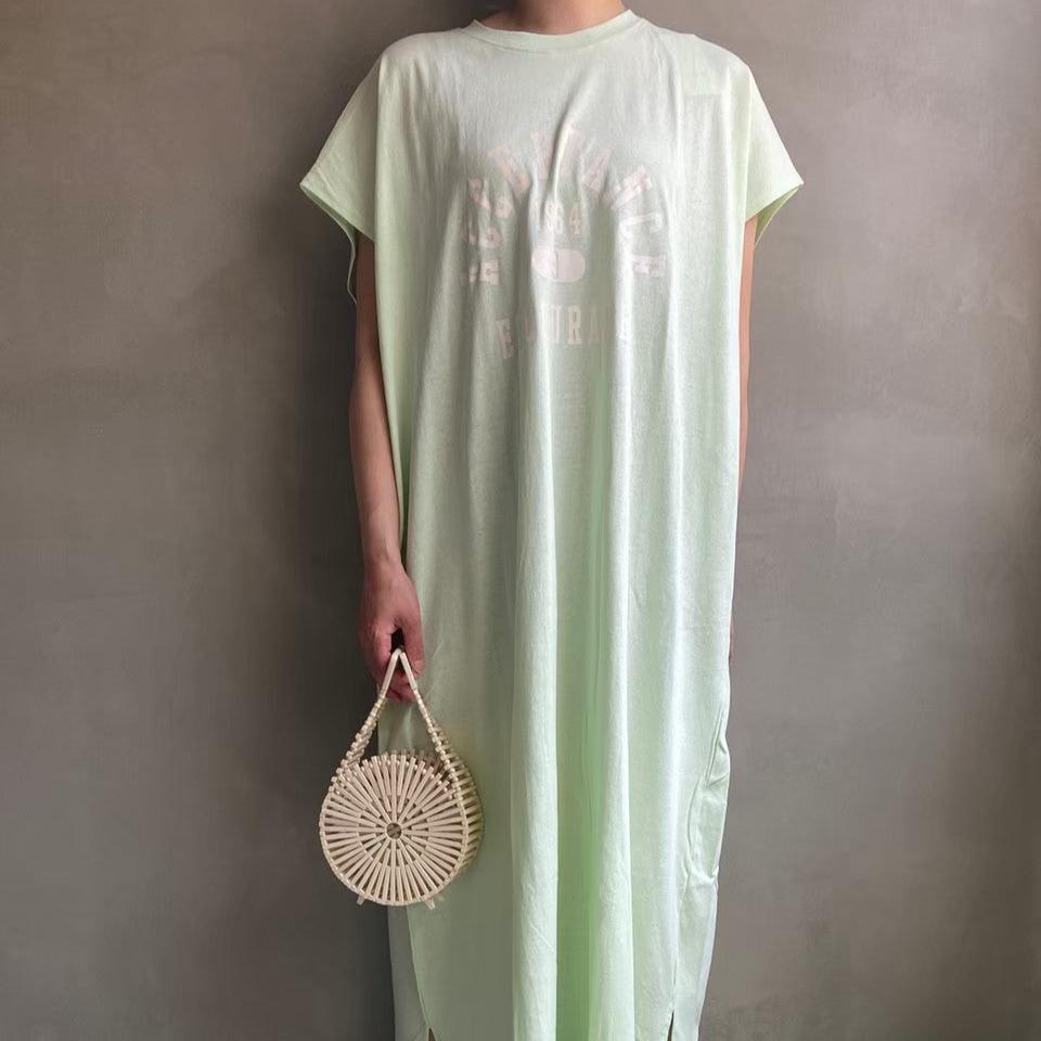 お出掛けはもちろん、おうち時間にもぴったりなビッグサイズでフロントプリントが可愛いビッグロングワンピース