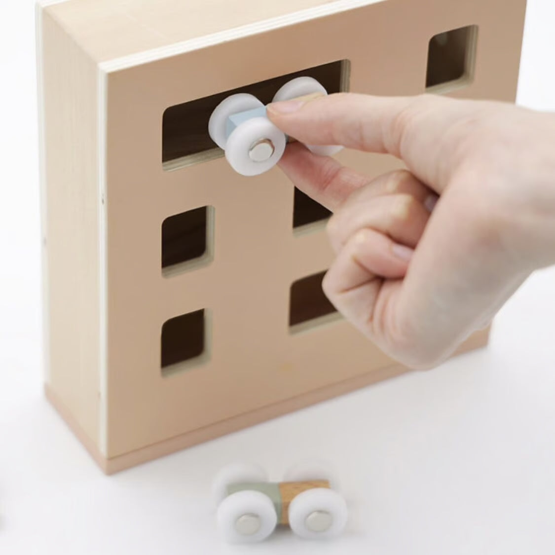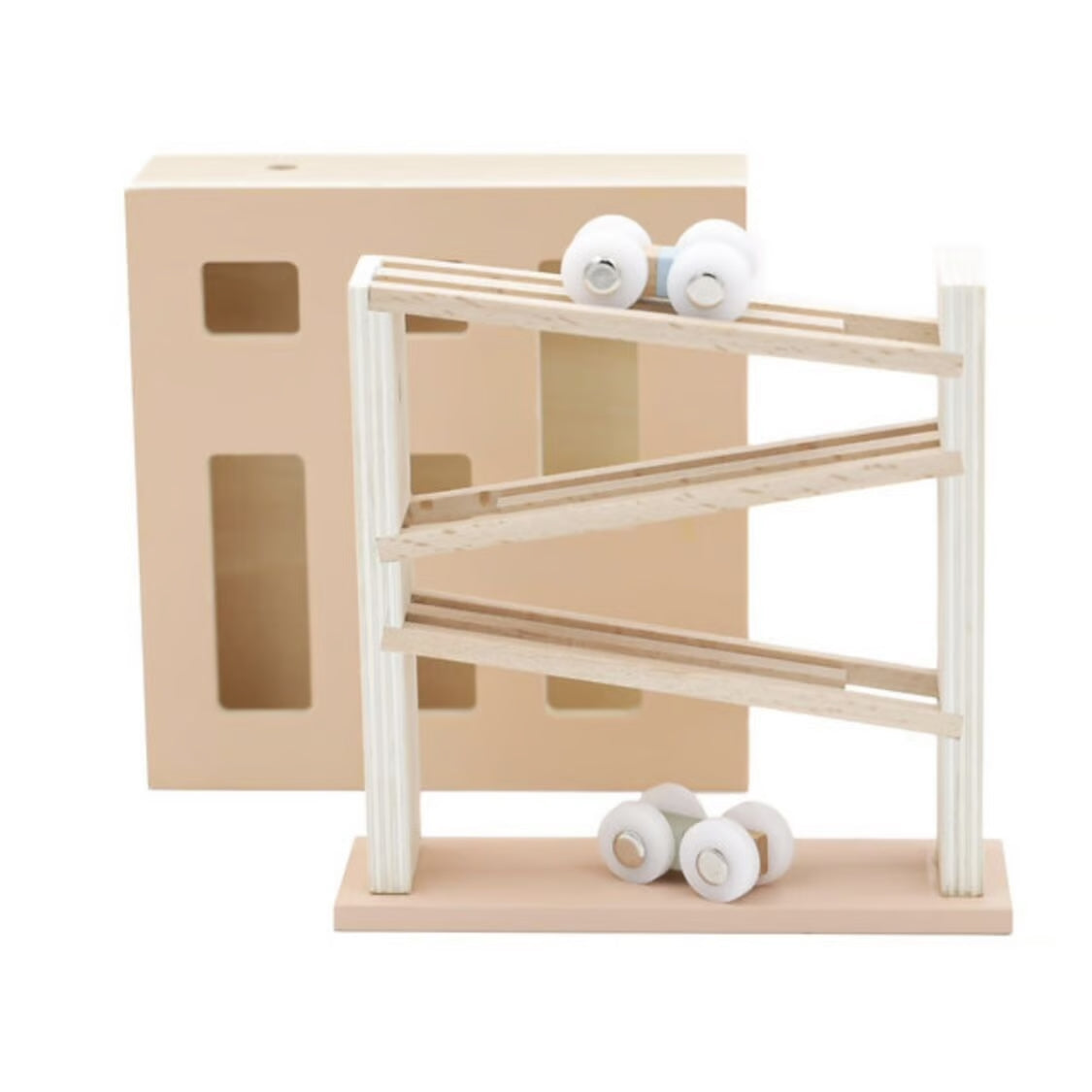 小さな車をスロープに乗せると、走り出すスロープトイです。