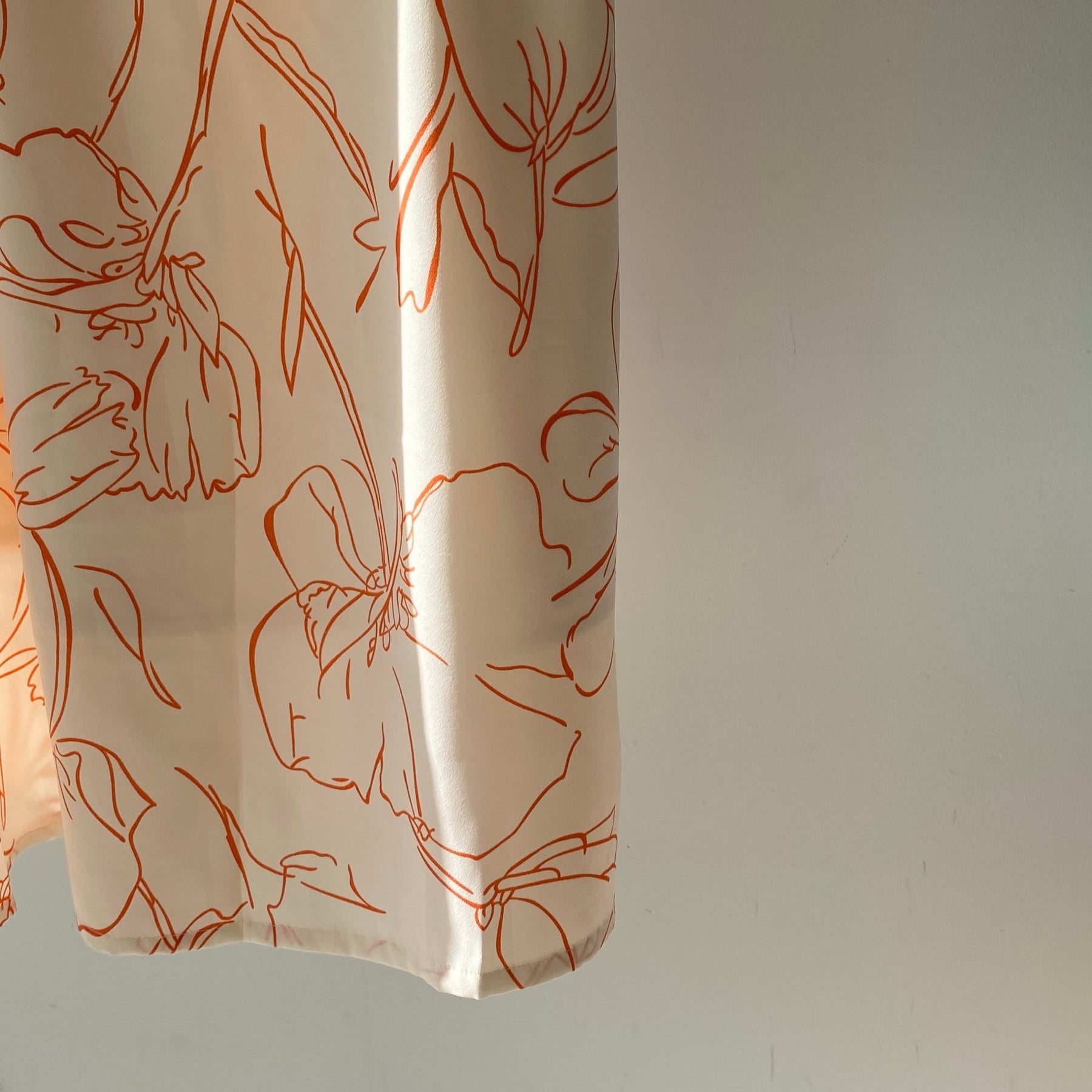 • 大ぶりな花柄のアート調生地でセミフレアスカートで歩く度に揺れるシルエットが綺麗な一枚