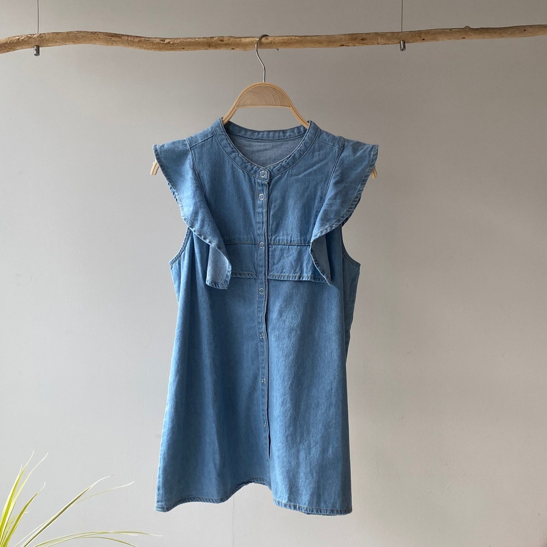 フロントのボタンも印象的でフリルヨークも可愛く!