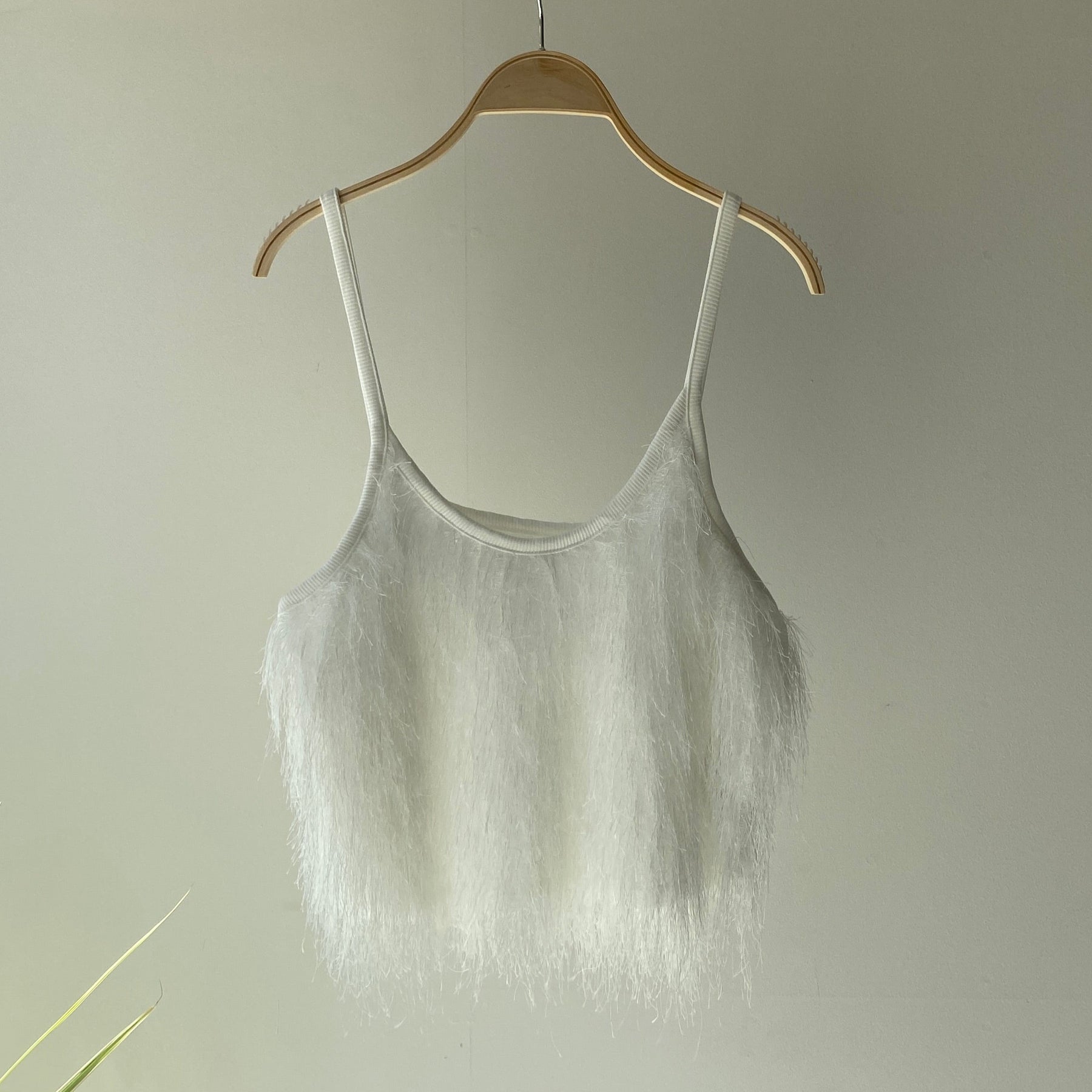 シンプルなコーデに遊び心をプラスするフリンジビスチェ