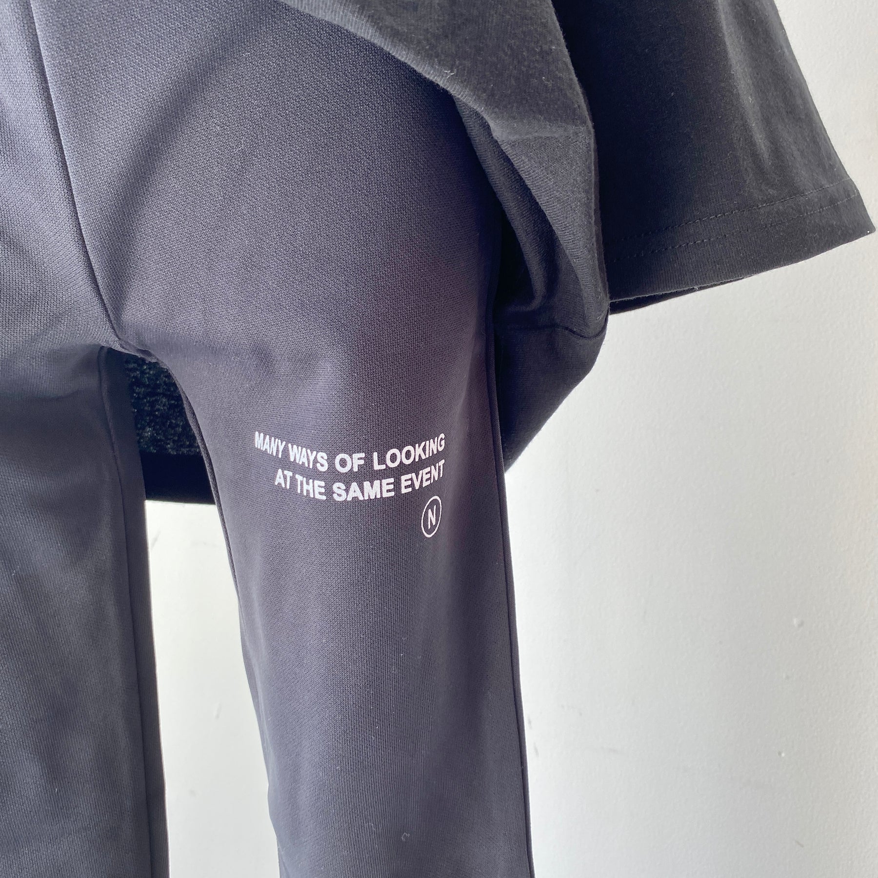 ビッグシルエットの9部丈トップスとジャージパンツのセットアップ