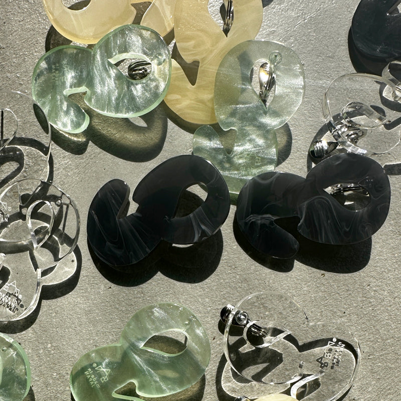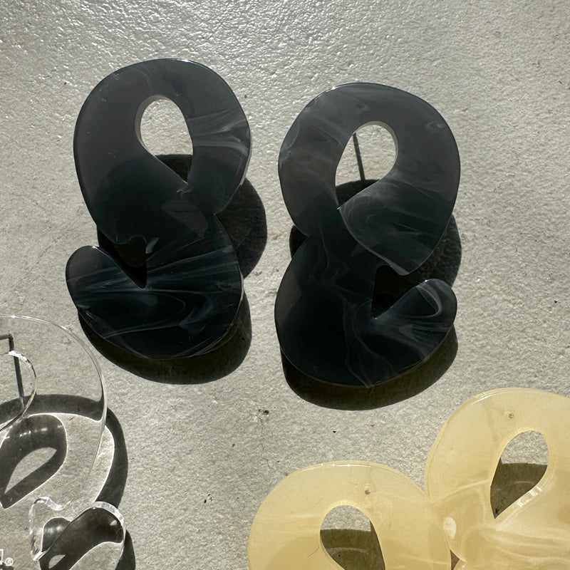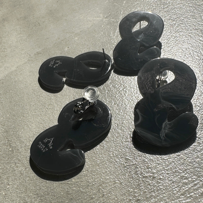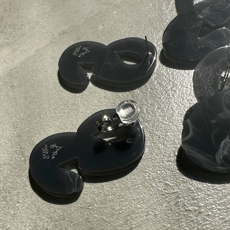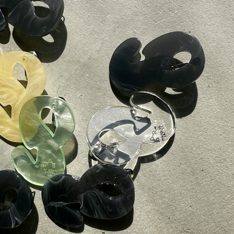 こちらはピアス Pierceページです 動きのあるカーブライン ボリューム感のある 大ぶりなデザインは シンプルなスタイリングに 本体:アクリル 金具:チタン