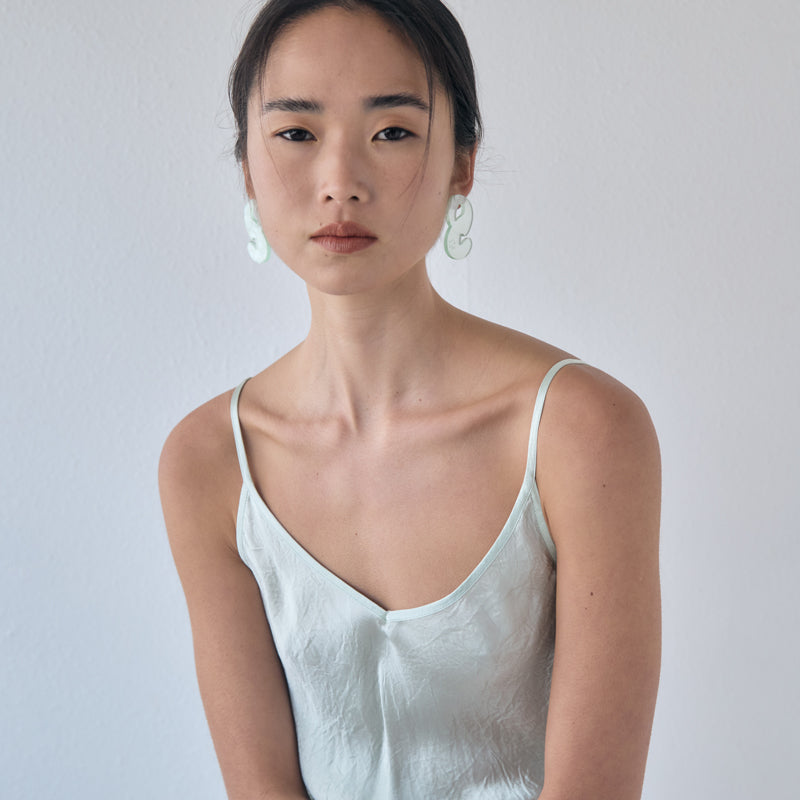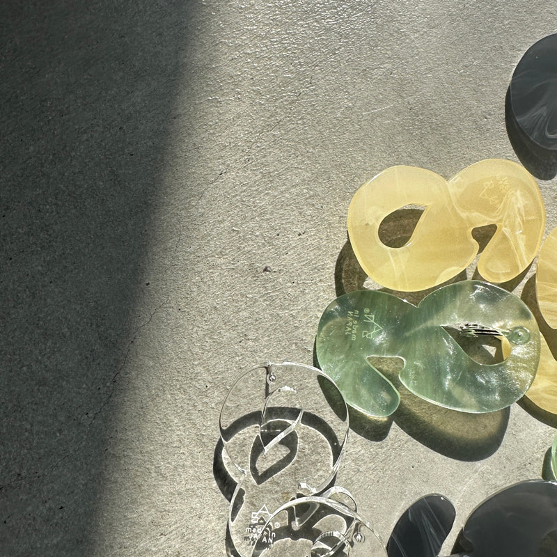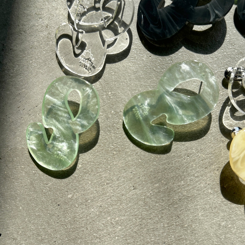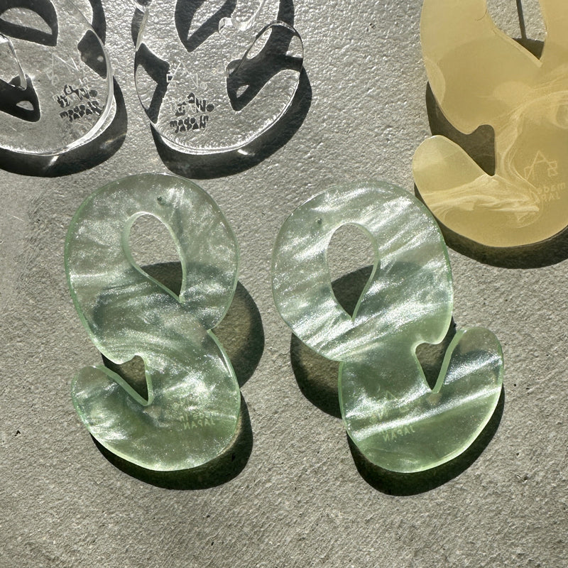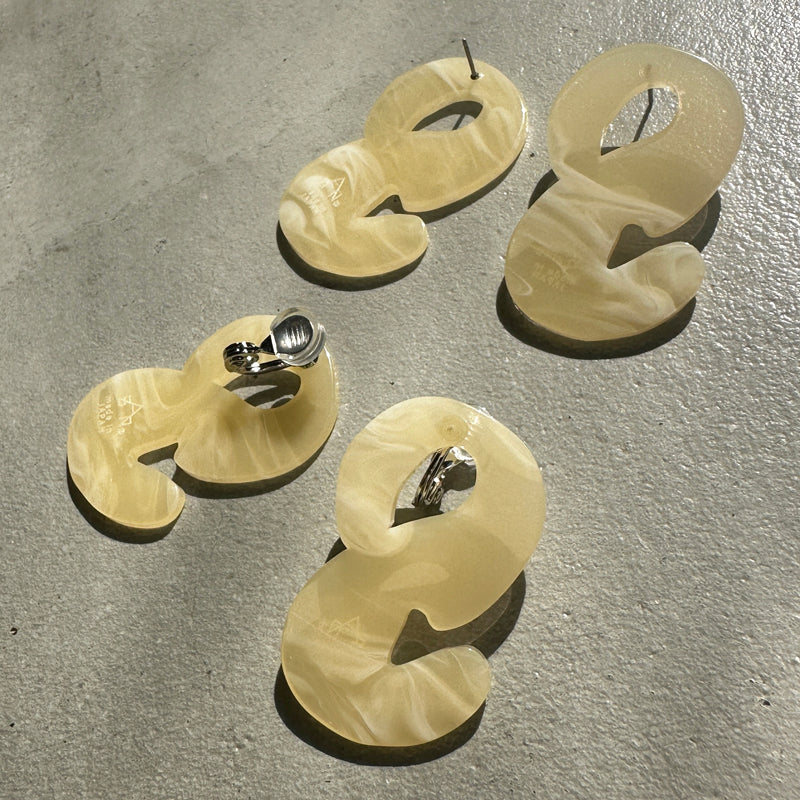 こちらはピアス Pierceページです 動きのあるカーブライン ボリューム感のある 大ぶりなデザインは シンプルなスタイリングに 本体:アクリル 金具:チタン