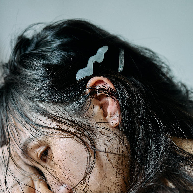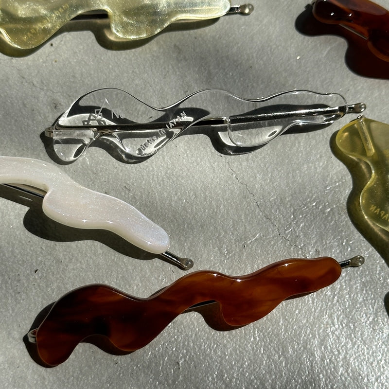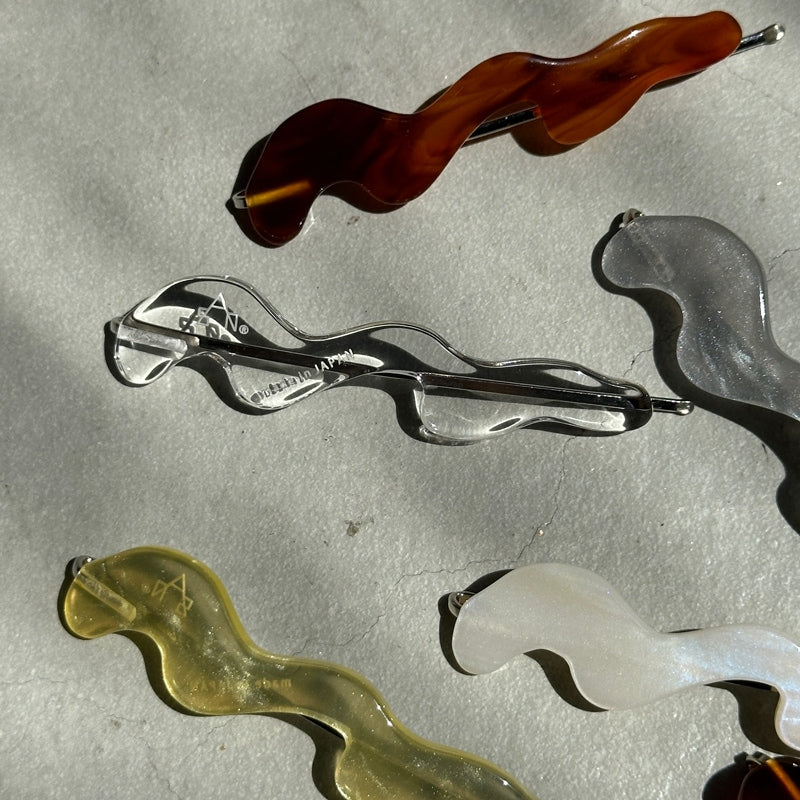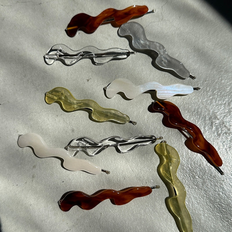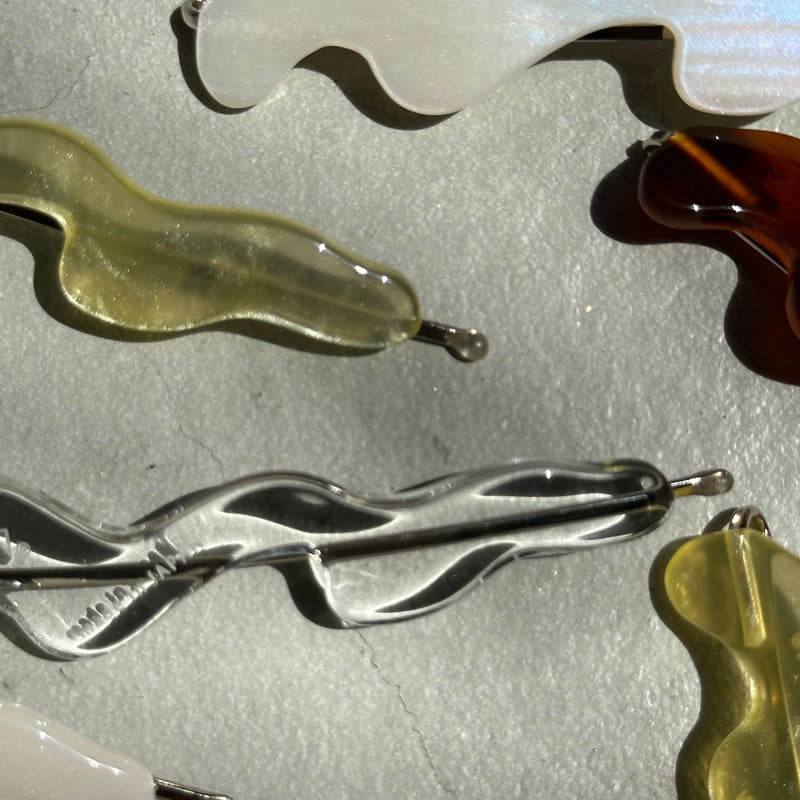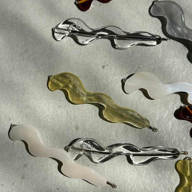 - 動きのある曲線を纏ったデザインピン ヘアスタイルのアクセントはもちろん ダウンスタイルでサイドにつけたり まとめ髪で落ちてくる髪をとめたりと 実用性も兼ね備えてくれます 本体:アクリル