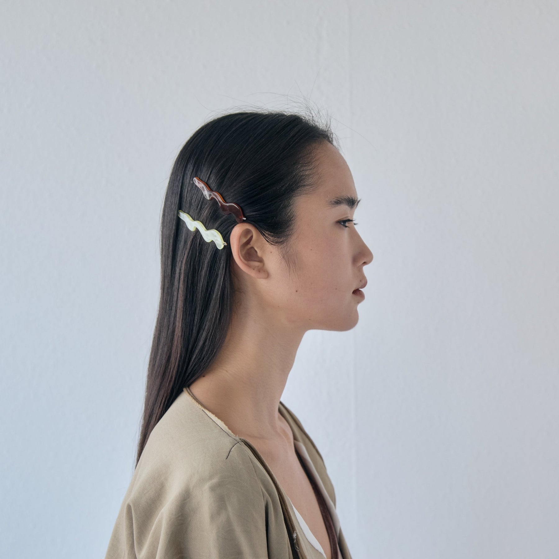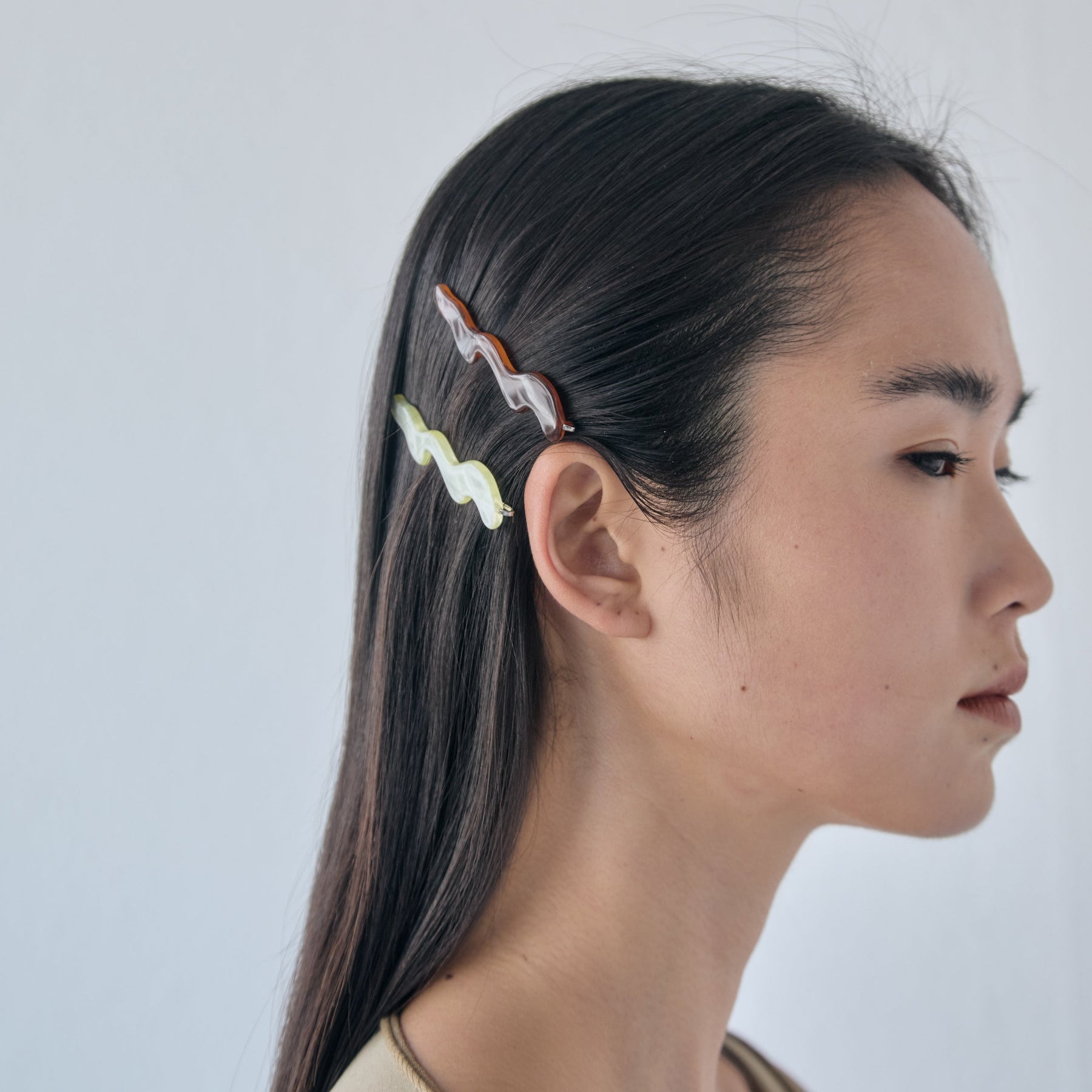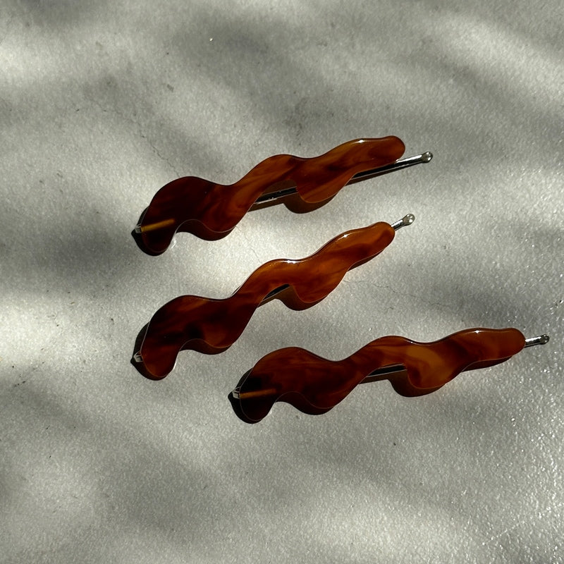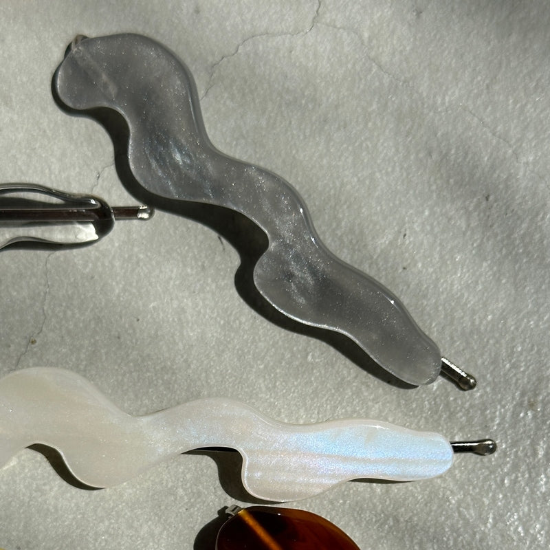 - 動きのある曲線を纏ったデザインピン ヘアスタイルのアクセントはもちろん ダウンスタイルでサイドにつけたり まとめ髪で落ちてくる髪をとめたりと 実用性も兼ね備えてくれます 本体:アクリル