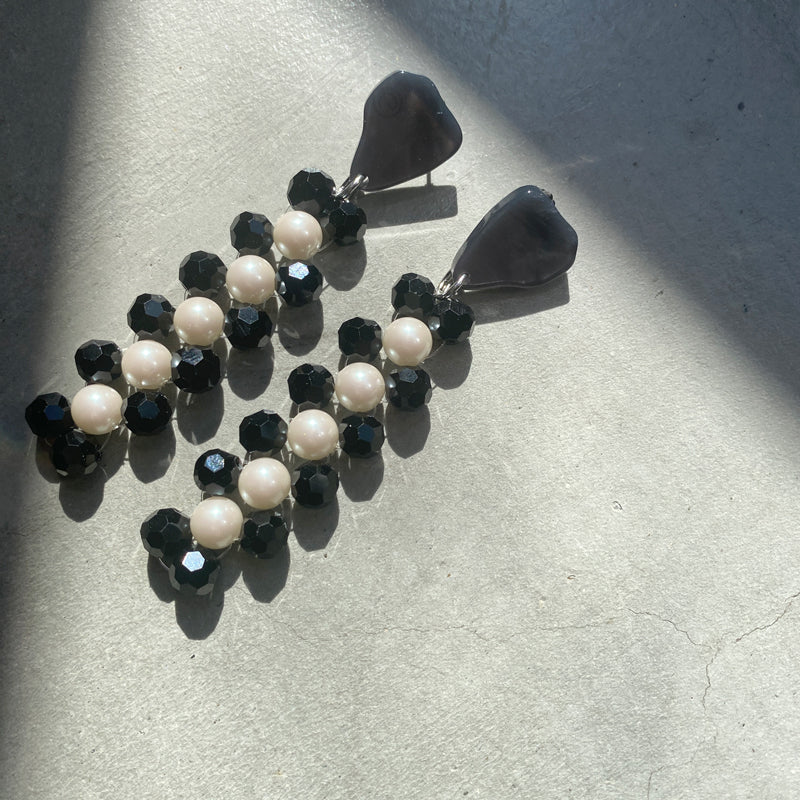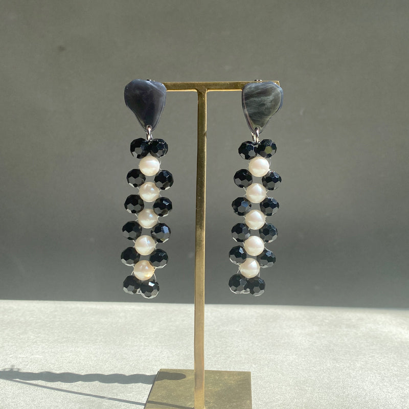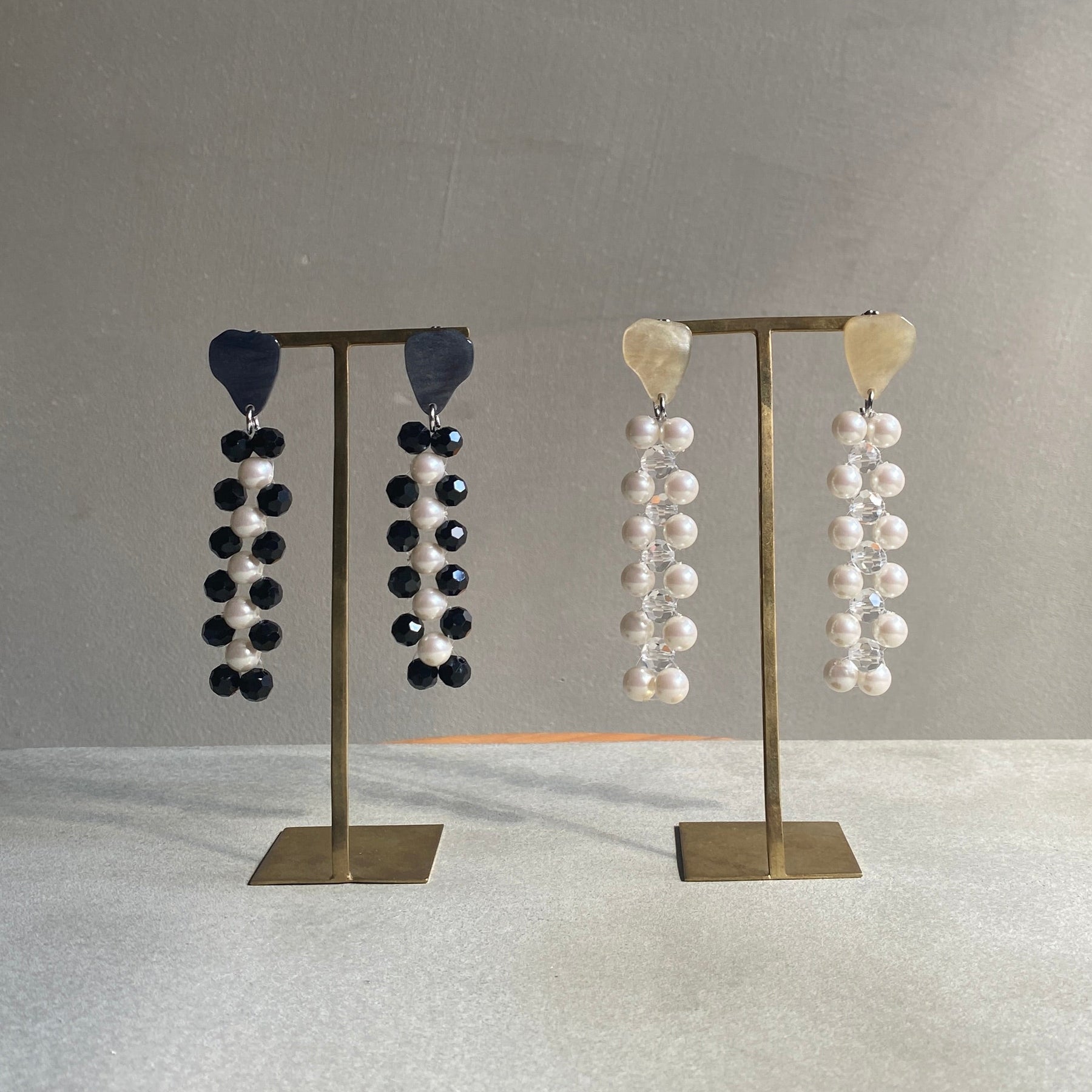 組み合わせたスリムシルエットの2toneピアス。細身のデザインで、