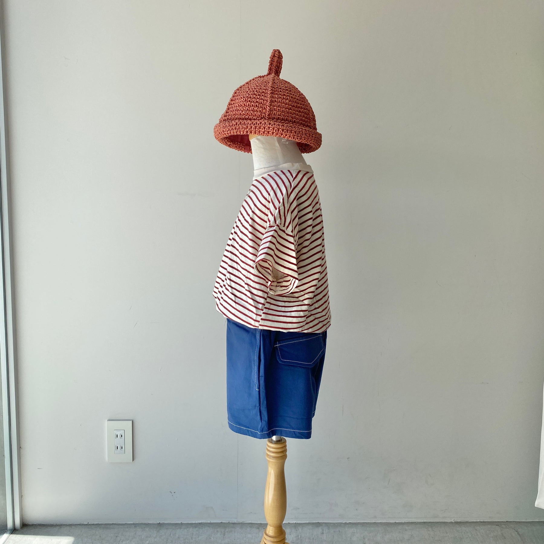 - 【hamomisi】Roll collar border T-shirt(110.120)