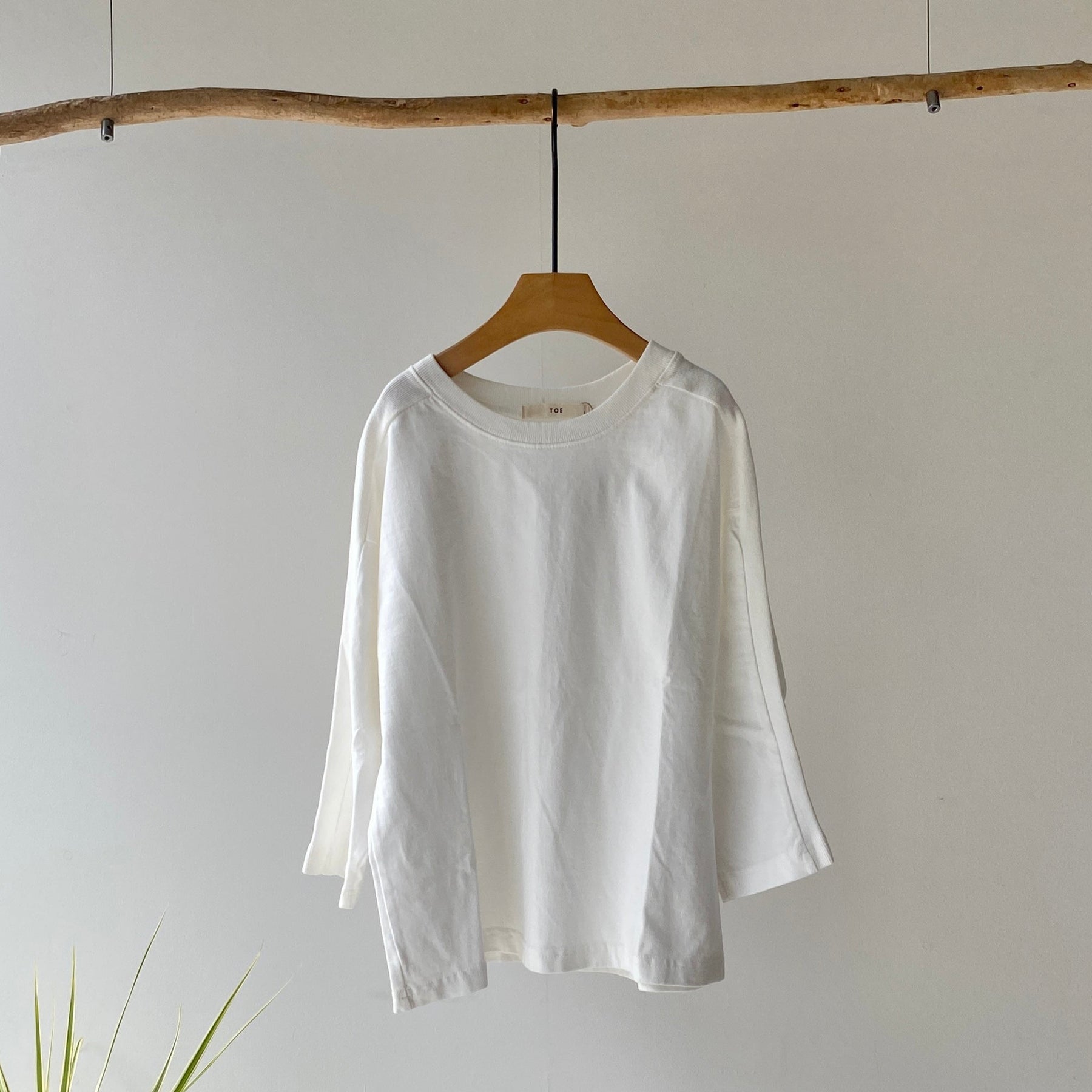 肩から袖にかけて切り替えラインの入っており、シンプルだけどお洒落なロングTシャツ